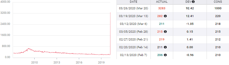 The Department of Labor will issue its initial jobless claims for the week of March 28 on Thursday April 2 at 12:30 GMT, 8:30 EDT.