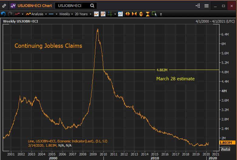 Last week’s record initial claims have prepared but not inured markets for disastrous economic data. As long as the claims are within the new parameters the effect of these historic numbers will be judged by context and not absolute values. With that standard there is probably not much that can surprise. But markets are keyed for bad news and with the US dollar the safe-have of choice, bad news is likely to be good news for the greenback.