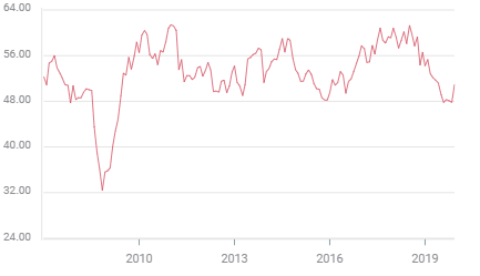 Overall manufacturing PMI had slipped below the 50 division between expansion and contraction in August. It stayed there for five months and had been forecast to rise slightly to 48.5 in January.