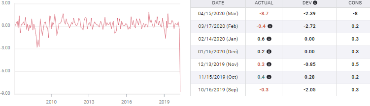 The cost to the consumer based US economy of the effort to fight the coronavirus pandemic was evident in the 8.7% plunge in the March retail sales figures, the largest on record, even though the job losses did not begin in earnest until the third week of the month.