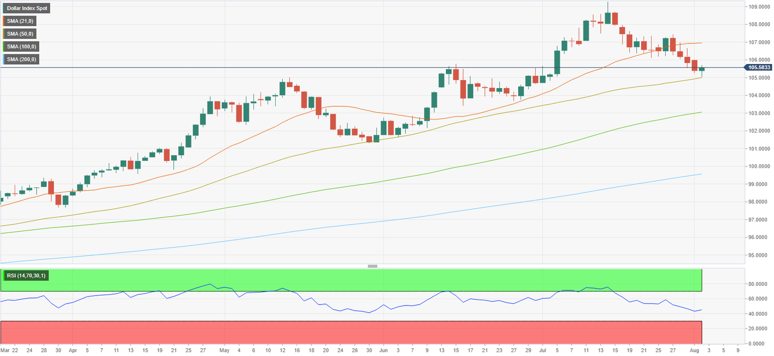 On Monday, the Institute for Supply Management (ISM) reported that the business activity in the manufacturing sector continued to expand at a moderate pace with the headline Manufacturing PMI coming in at 52.8. The Prices Paid component of the survey, however, declined to 60 from 78.5 in June, revealing a remarkable easing in price pressures. Consequently, the US Dollar Index (DXY), which tracks the greenback’s performance against a basket of six major currencies, fell to its lowest level in a month near 105.00.