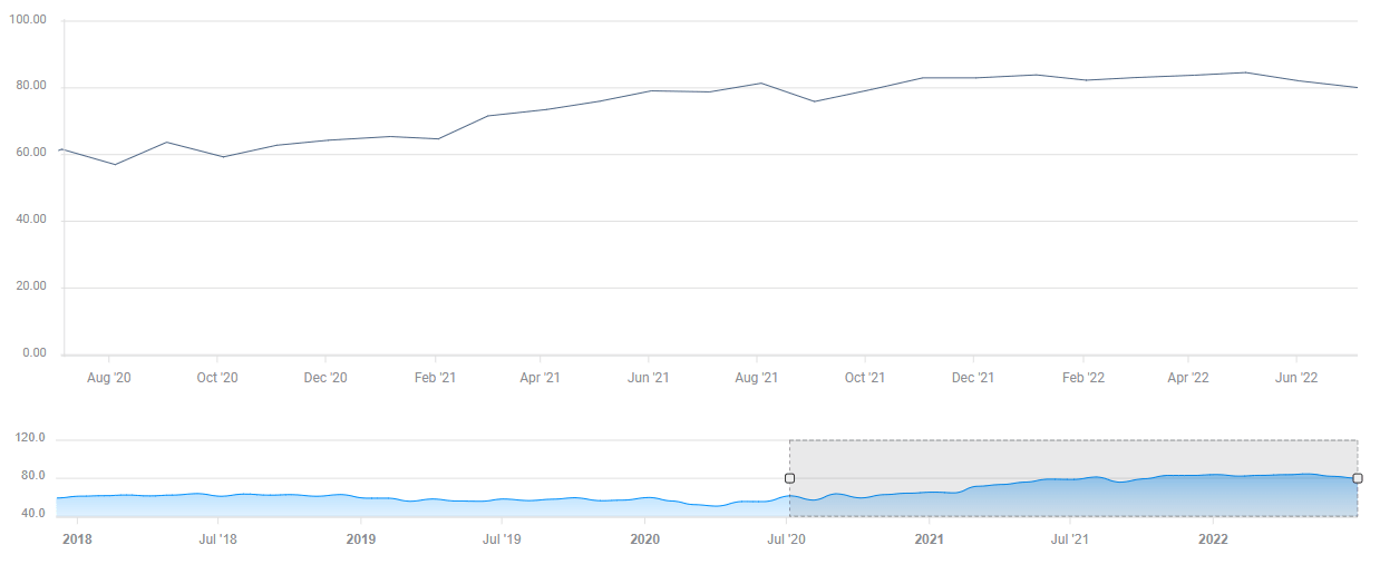 The dollar has been having a difficult time finding demand amid disappointing macroeconomic data releases and the Fed’s decision to abandon rate guidance. The US Bureau of Economic Analysis’ initial estimate showed that the US economy contracted at an annualized rate of 0.9% in the second quarter and the probability of a 75 basis points (bps) Fed rate hike in September dropped below 20%.