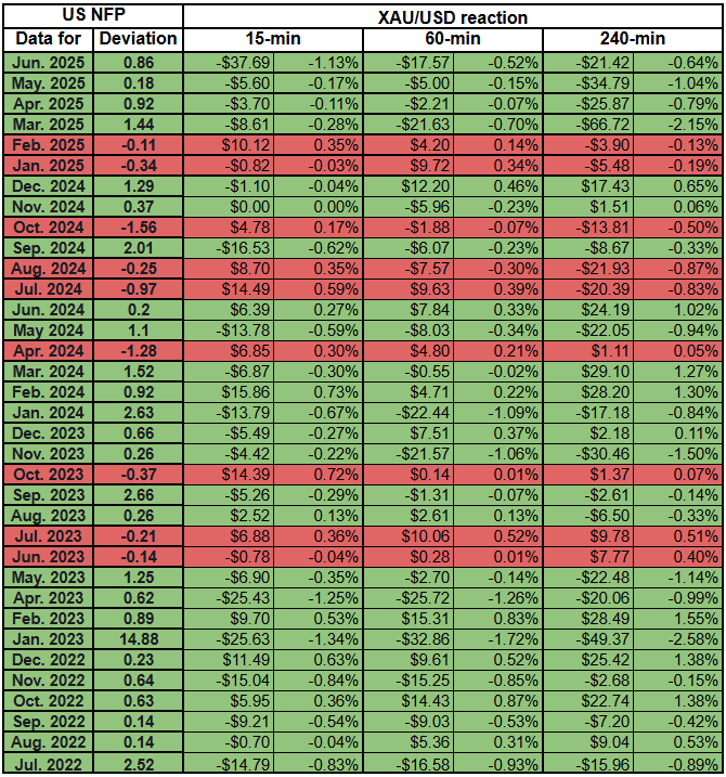 US July Nonfarm Payrolls Preview: Analyzing Gold price reaction to NFP surprises