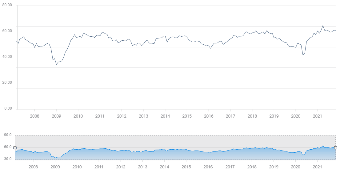 Purchasing Managers Indexes (PMI) from the Institute for Supply Management (ISM) are expected to show little change in November, with the overall gauge to rise to 61 from 60.8 in October.