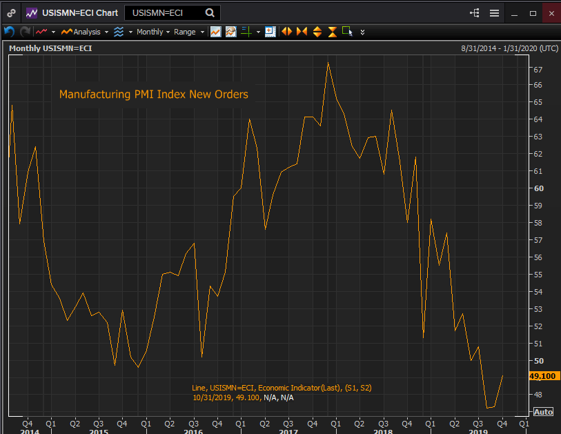 Early signs from export orders, business spending and retail sales indicate that the manufacturing downturn may be lightening. If the confidence in an eventual US China trade deal takes hold in the business community the initial turn could become a rush for advantage.