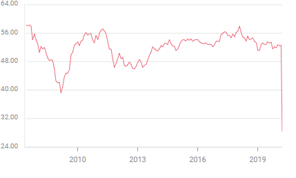 The UK manufacturing PMI, as elsewhere, seemed less damaged by the spreading business closures, dropping to 48 in March from 51.7. The output component of manufacturing PMI was shrinking at its fastest rate since the Euro zone debt crisis in 2012.