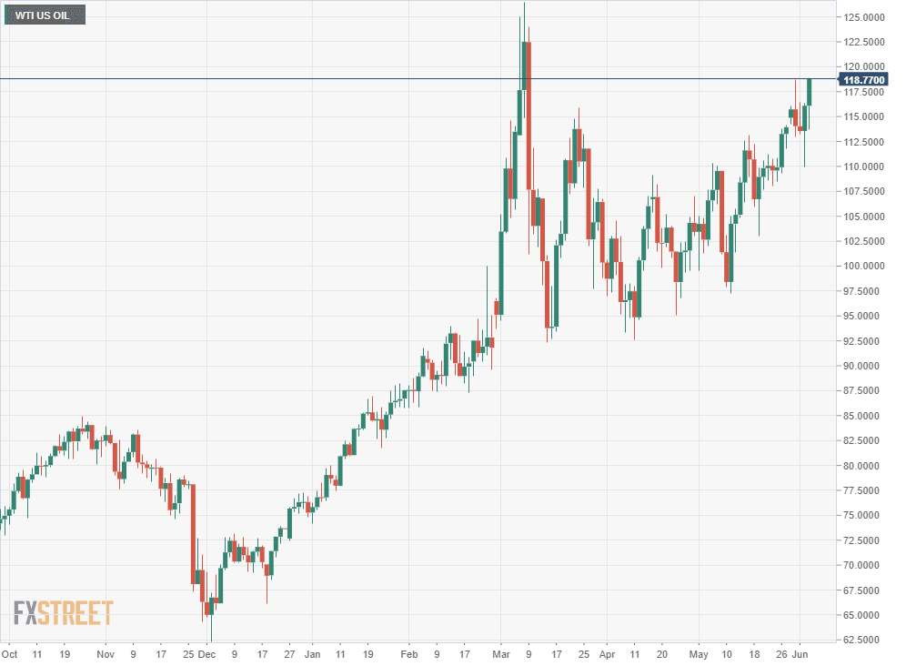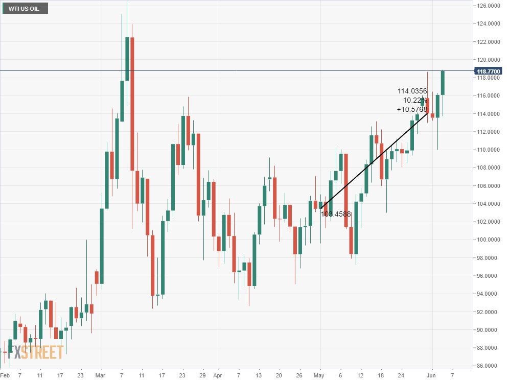 A collapse in hiring would put great strains on the Fed rate hike program. With May successfully behind them, the voting members have just June’s NFP on July 8 before considering a second 0.5% hike at the July 27 bank meeting. This month’s FOMC meeting on June 15 has a 94.2% probability for a 0.5% increase.