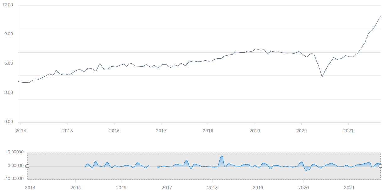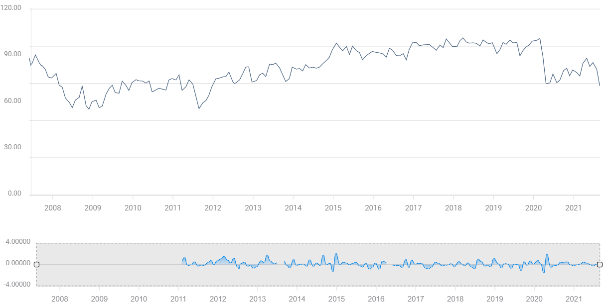 The Michigan Consumer Sentiment Index, to be released on Friday, September 17th at 14:00 GMT, is forecast to rise to 72.2 in September from 70.3 the month before. Even during the lockdowns of early 2020, the index had only fallen to 71.8 in April.
