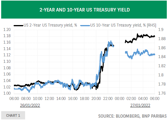 In his press conference last week, Fed chairman Jerome Powell was very clear. Based on the FOMC’s two objectives – inflation and maximum employment – the data warrant to start hiking interest rates in March and, probably, to move swiftly thereafter. In doing so, it will be “led by the incoming data and the evolving outlook”. This data-dependency reflects a concern of tightening too much and makes monetary policy harder to predict. The faster the Fed tightens, the higher the likelihood of having it take a pause to see how the economy reacts.