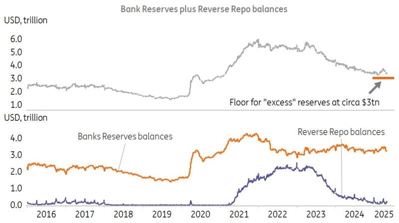 Bank reserves still ample, but will ultimately slip to $3tn this year