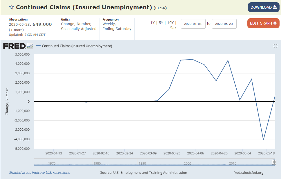 Non-farm payrolls shed 20.5 million positions in April, over the last 11 weeks 43 million Americans have filed for unemployment insurance. From a market perspective the expected 8 million loss to May payrolls is old data.