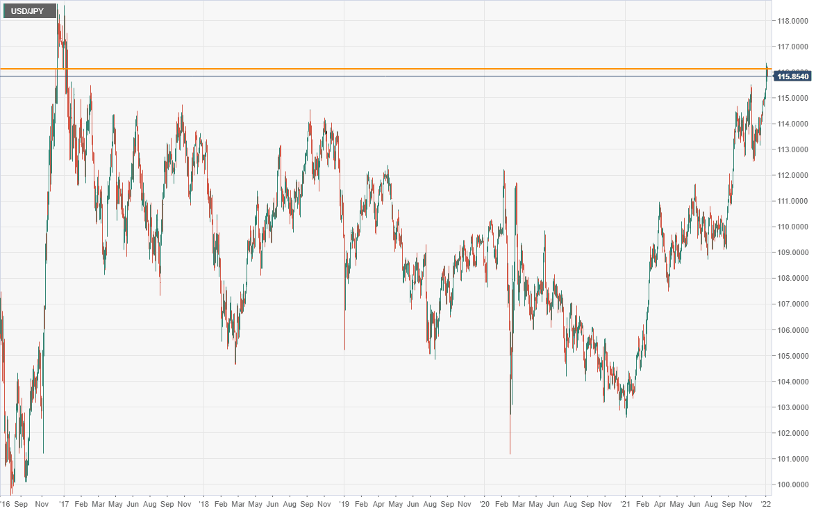 Dollar response was mixed to Wednesday’s minutes, losing ground to the euro and the sterling but gaining versus the Canadian and Australian dollars. The Wednesday USD/JPY close at 116.12 was the highest in five years.