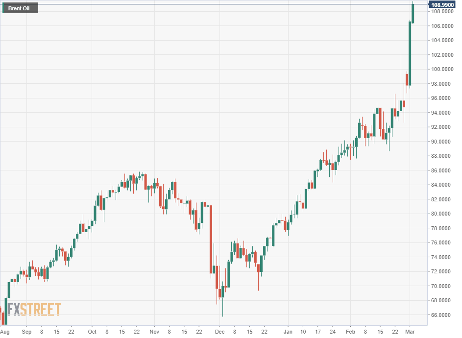 Consumer inflation in the US reached 7.5% in January, a four-decade high, with WTI prices averaging $82.47 for the month. Tuesday’s close of $104.81, represents a potential 27% jump in the world's most basic industrial commodity.
