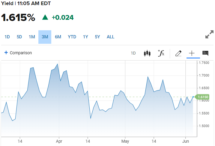 Treasury rates are little changed. The 10-year Treasury yield opened on May 7 at 1.576%, as of this writing it is 1.615%.The 2-year began trading on May 7 at 0.157%, it is currently at 0.155%.