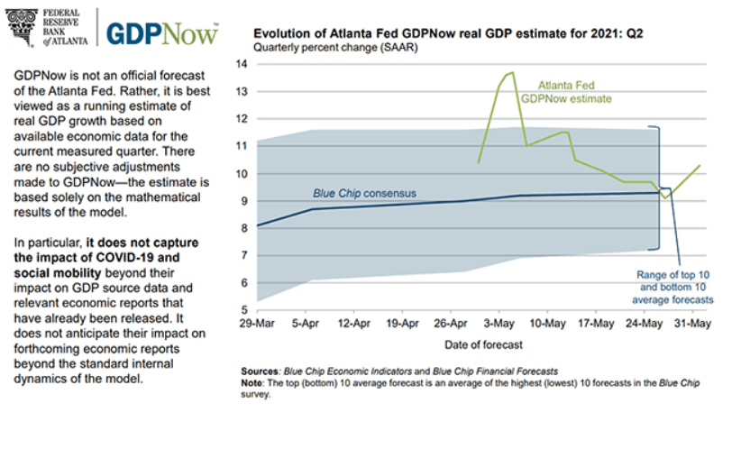 The US economy is growing at a 10.3% annual rate in the latest Atlanta Fed estimate.