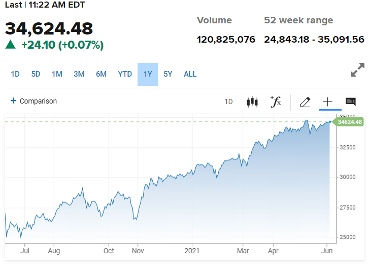 Equities have pursued the same cautious program. The S&P 500 opened on May 7 at 4,210.34. It is currently trading at 4.200.95. The Dow was at 34,578.27 that morning, it is 34,624.48 presently.