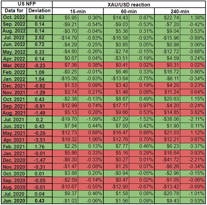 US November Nonfarm Payrolls Preview: Analyzing gold's reaction to NFP surprises