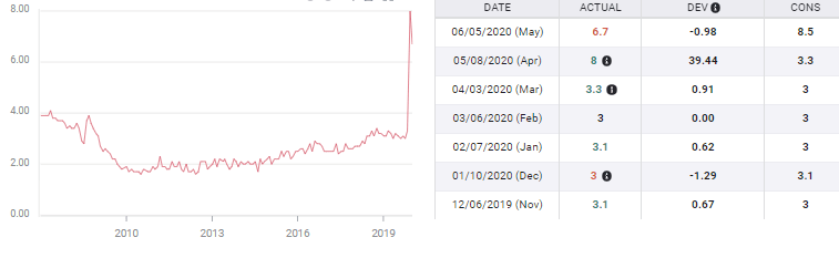 Most important for the economy sales more than reversed the April collapse of 14.7% providing businesses with immediate cash flow after weeks of empty cash registers. Though the ex-autos and control group numbers did not quite reverse their April declines of 15.2% and 12.4% respectively, the overall report was so much better than expected it revived hopes for a rapid and even v-shaped recovery.