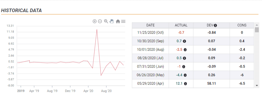 The same report also includes Personal Income data, and that is also projected to decline. A decrease of 0.3% is on the cards, after a retreat of 0.7% in October – falling short of estimates back then.