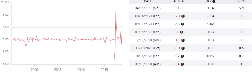 Aided by the two stimulus awards of $600 in January and $1400 in March and the red-hot job market, US consumers boosted Retail Sales by 4.90% in the first quarter. The Control Group category that enters the GDP calculation, was scarcely less active, averaging 4.07% for the quarter. Consumer spending accounts for about 70% of US economic activity, with these sales figures it is hardly surprising factory managers are optimistic.