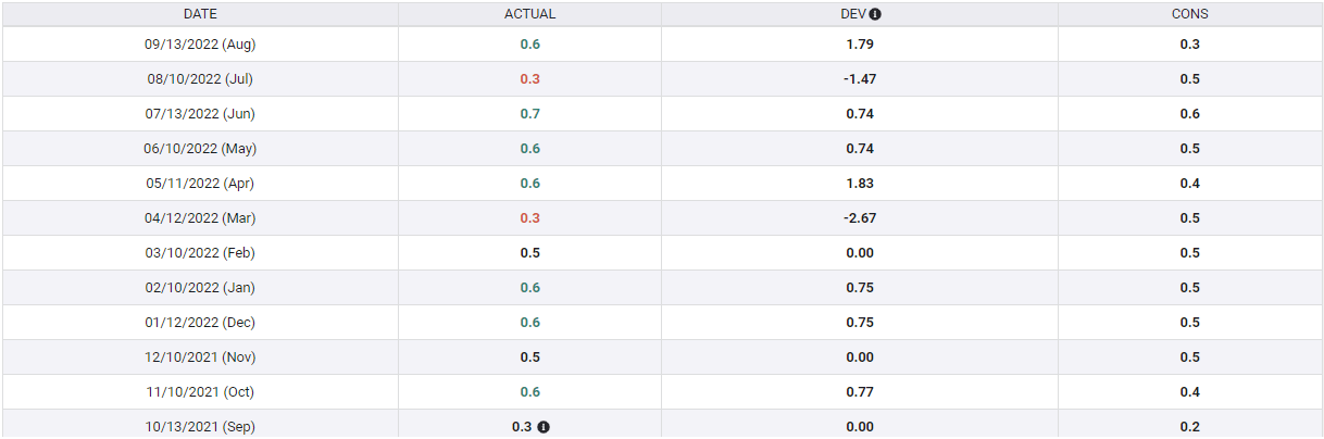 Investors expect the headline annual CPI to decline to 8.1% from 8.3% in August. The Core CPI, which excludes volatile food and energy prices, is seen edging higher to 6.5% from 6.3% in the same period. On a monthly basis, the CPI and the Core CPI are expected to arrive at 0.5% and 0.2%, respectively. Since the monthly figures are not distorted by the base effects, they are likely to paint a more accurate picture of core inflation.