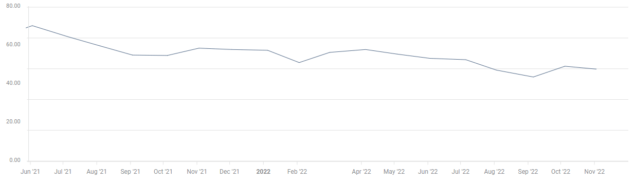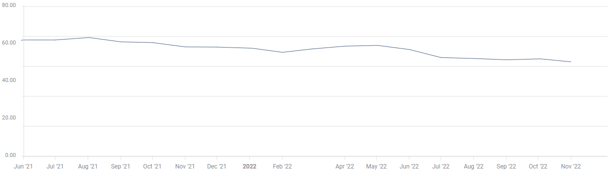 - Markets are pricing in a 71.1% probability of a 50 bps Fed rate hike in December.