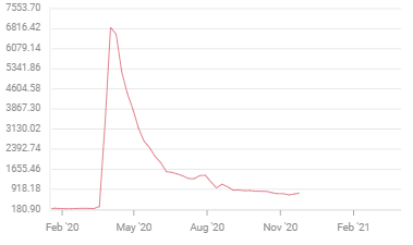 The contrast between the two eight-month periods is striking. From June 2019 to January 2020 the unemployment rate was 3.6%. Durable Goods Orders averaged 0.26% a month and business spending was 0.35%. From March through October this year the mid-point of unemployment was 9.6% yet goods orders averaged 0.40% and business investment was 0.64%.