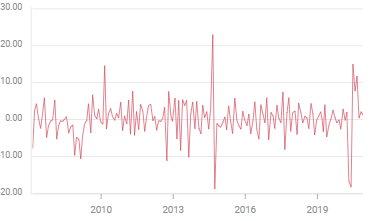 Finally, the business spending proxy, Nondefense Capital Goods Orders ex Aircraft added 0.7% in October on a 0.5% prediction and nearly doubled the September gain to 1.9% from 1%. Here also the pandemic increase of 0.64% a month was much stronger than the 0.35% in the eight months to January 2020.