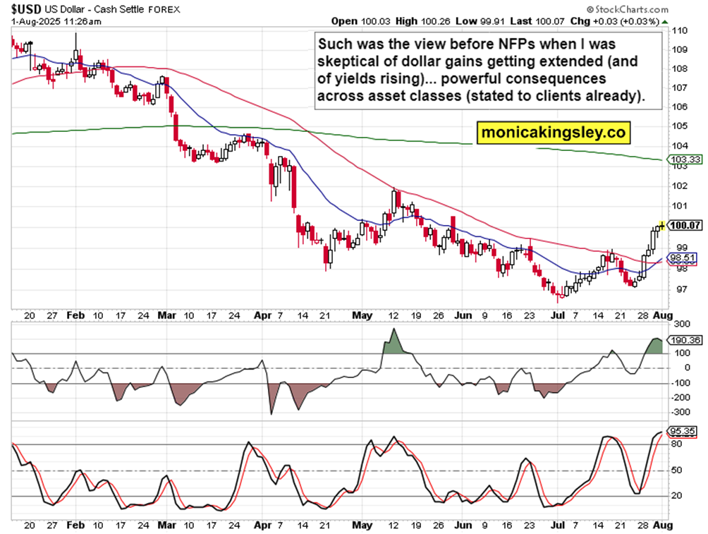 Such was the reaction to incoming jobs data called for clients, and there‘s great value in observing the differences in immediate reaction to the data set in USD, yields, S&P 500, Russell 2000 and gold with silver.