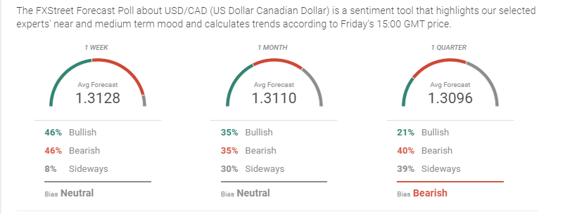 In the one month view there is a slight rise in bullish feeling 35% from 30%, with an identical bearish sentiment at 35% and a small drop in the neutral conviction to 30% from 35%. The forecast rate is 1.3110 from 1.3066.
