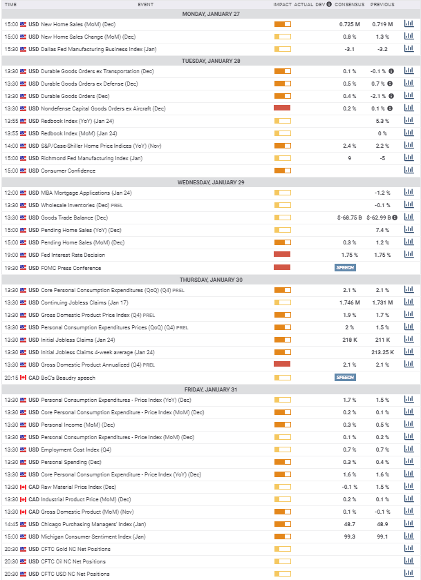 The US, in contrast, has a busy week. Monday brings new home sales for December with 725,000 annually forecast up from 719,000 in November. Purchases have risen from their low of 604,000 last May and reflect the strength of the housing market overall. New home construction provides most of the employment in the sector.