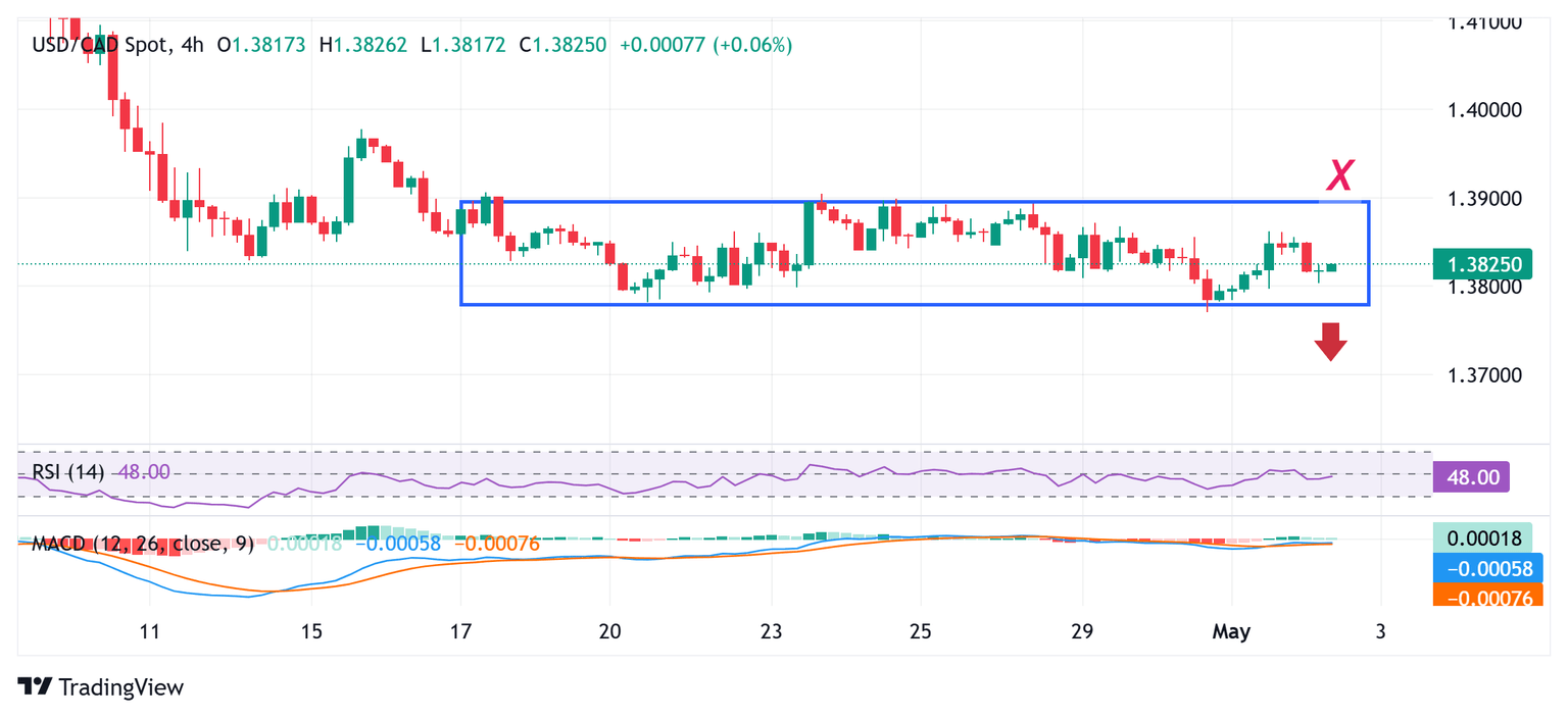 Moreover, the Personal Consumption and Expenditure (PCE) Price Index pointed to signs of easing inflation. Adding to this, the US ADP report on private-sector employment suggested that the US labor market is cooling. The view was further reinforced by a rise in the US Initial Jobless Claims to 241,000 in the week ended April 26 or the the highest level since February. Hence, the focus remains glued to the release of the US Nonfarm Payrolls (NFP) report, due later during the early North American session. The crucial US jobs data might provide cues about the Fed's policy outlook, which will drive the USD and provide a fresh impetus to the USD/CAD pair.