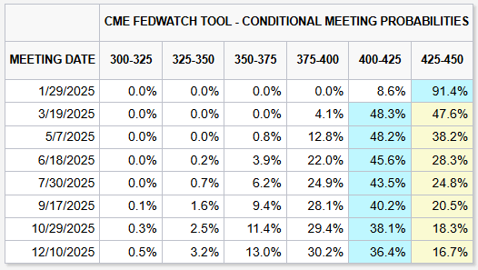 The Fed expects to deliver only two additional rate cuts in 2025, according to its Summary of Economic Projections (SEP) or dot plot of interest rate expectations. The Fed’s latest dot plot, released at its last meeting of 2024 on December 18, shows that the overwhelming majority of Fed policymakers only expect the Fed to deliver two more quarter-point rate cuts for all of 2025, far below the four-plus that markets had been predicting as recently as the first week of December.