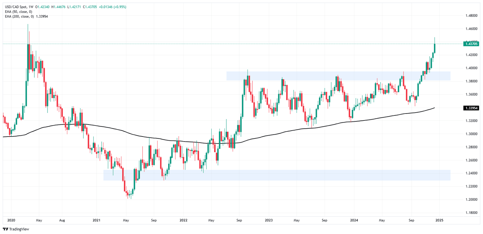 2024 was a lossmaker for the Canadian Dollar. The Loonie shed around 8.5% against the US Dollar, sending the USD/CAD chart to 56-month highs and contending with the 1.4400 handle, the pair’s highest price since the 2020 pandemic. Excluding the COVID pandemic, USD/CAD hasn’t tested the 1.4400 region since January 2016, an eight-year span.