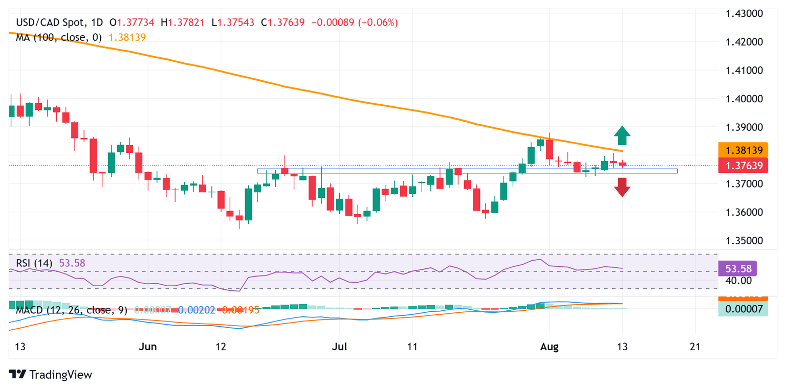 Furthermore, the underlying strong bullish sentiment, bolstered by an extension of the US-China trade truce and the US-Russia summit aimed at ending the war in Ukraine, turns out to be another factor undermining the safe-haven Greenback. However, bearish Crude Oil prices and dovish Bank of Canada (BoC) expectations keep a lid on any meaningful gains for the commodity-linked Loonie. Apart from this, trade-related uncertainties could undermine the Canadian Dollar (CAD) and help limit deeper losses for the USD/CAD pair, warranting some caution before positioning for any further depreciating move.