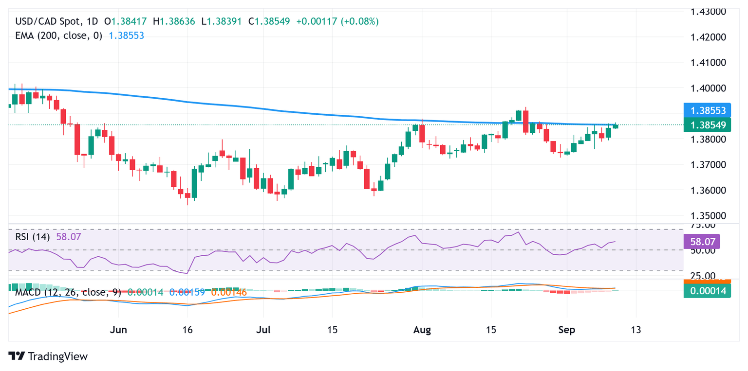 The USD/CAD bulls might now wait for sustained strength and acceptance above the 200-day Exponential Moving Average (EMA), currently pegged around the 1.3870 region, before placing fresh bets. Given that oscillators on the daily chart have been gaining some positive traction, the subsequent move up has the potential to lift spot prices beyond the 1.3900 mark, towards the next relevant hurdle near the 1.3950 region. The momentum could extend further towards reclaiming the 1.4000 psychological mark.