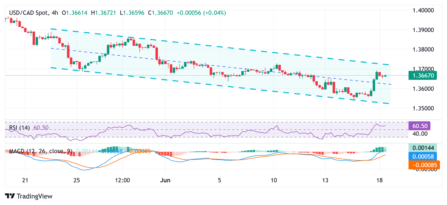 Furthermore, a further escalation of geopolitical tensions in the Middle East should offer some support to the safe-haven buck and limit losses for the currency pair. Aerial exchanges between Israel and Iran continued for the sixth straight day. Adding to this, Trump ramped up his rhetoric and demanded Iran’s unconditional surrender, fueling speculations over possible US involvement in the conflict. This, in turn, warrants caution before placing bearish bets around the USD/CAD pair and positioning for the resumption of over a one-month-old downtrend.