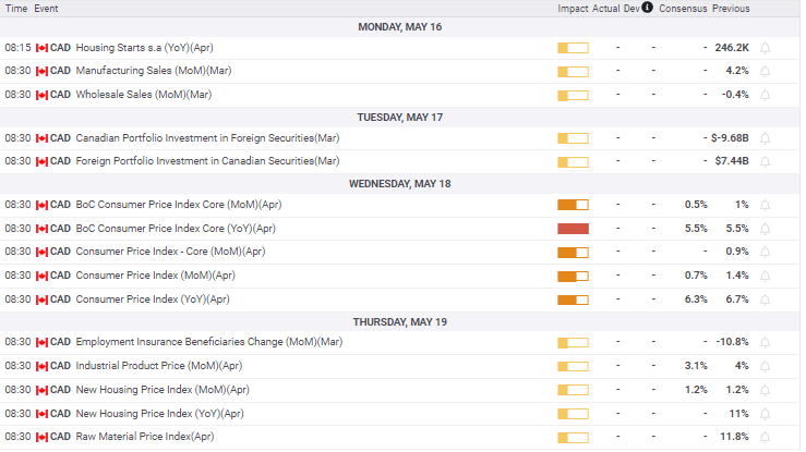 Canadian CPI is expected to moderate slightly in April but with the Bank of Canada policy set it will have minimal market impact.