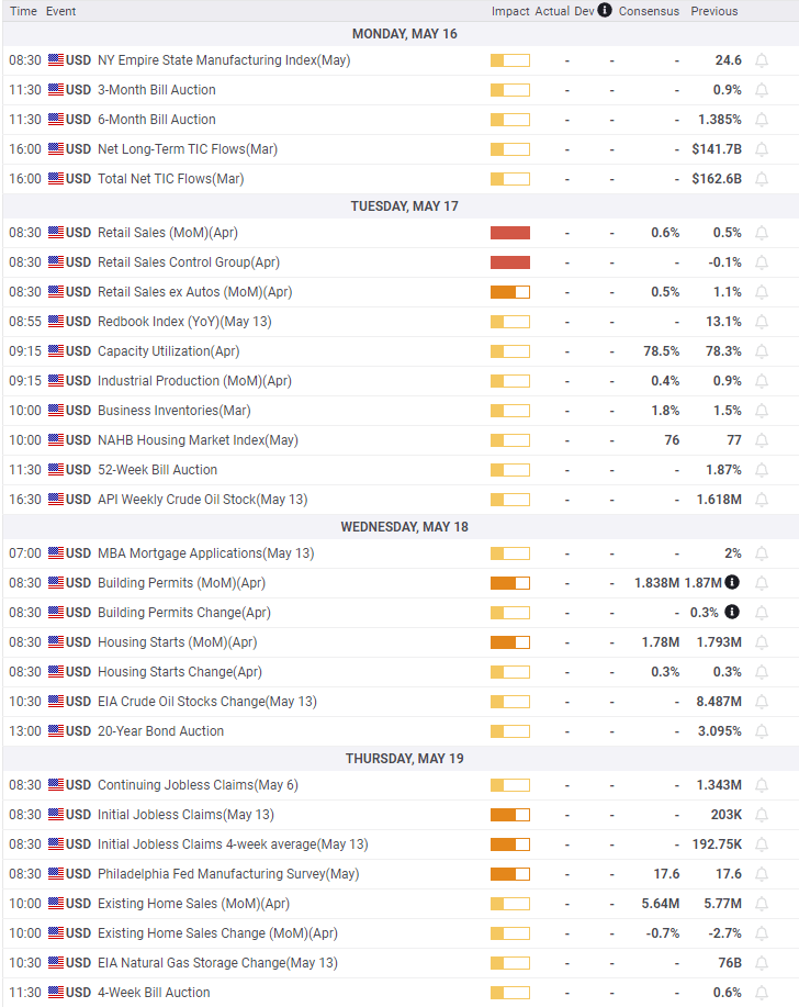 Retail Sales for April in the US are expected to exhibit continued moderate growth. Any sign of weakness will undermine equities and tend to the safety dollar trade. Existing Home Sales, 90% of the US market, were already down 11.5% in March from the November recent high as mortgage rates have climbed, a further drop is expected for April.