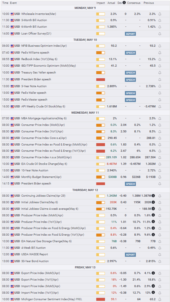 April's US CPI at 8.3% overall and core at 6.2% were slightly lower than the March figures but higher than the forecasts. Combined with producer prices at 11%, inflation is looking more and more as a long-term phenomenon, keeping market focus on the Federal Reserve’s aggressive rate policy.