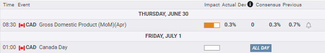 Canadian data was almost nonexistent this week with just April GDP reported as expected at 0.3% to no notice whatsoever.