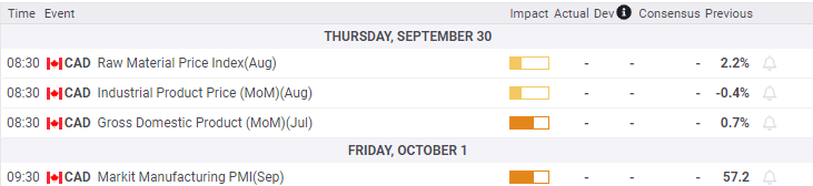 Canada statistics September 27–October 1