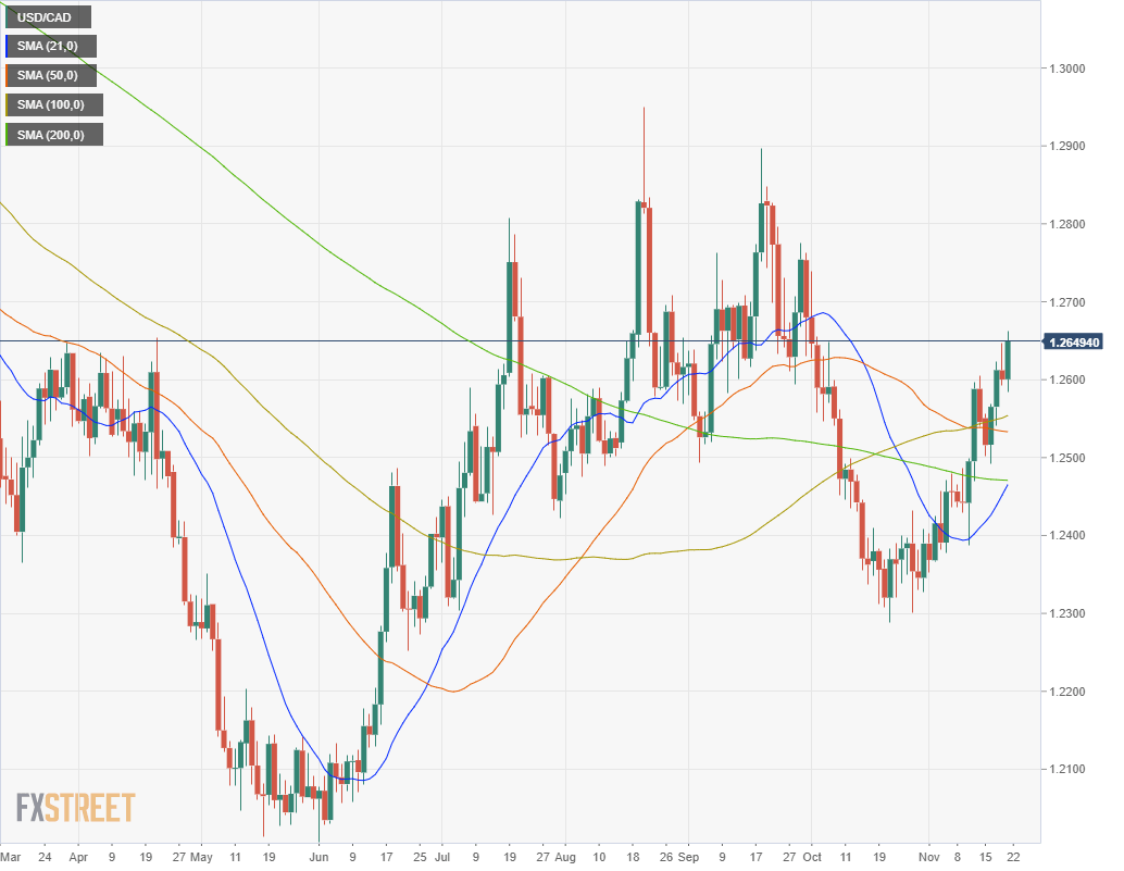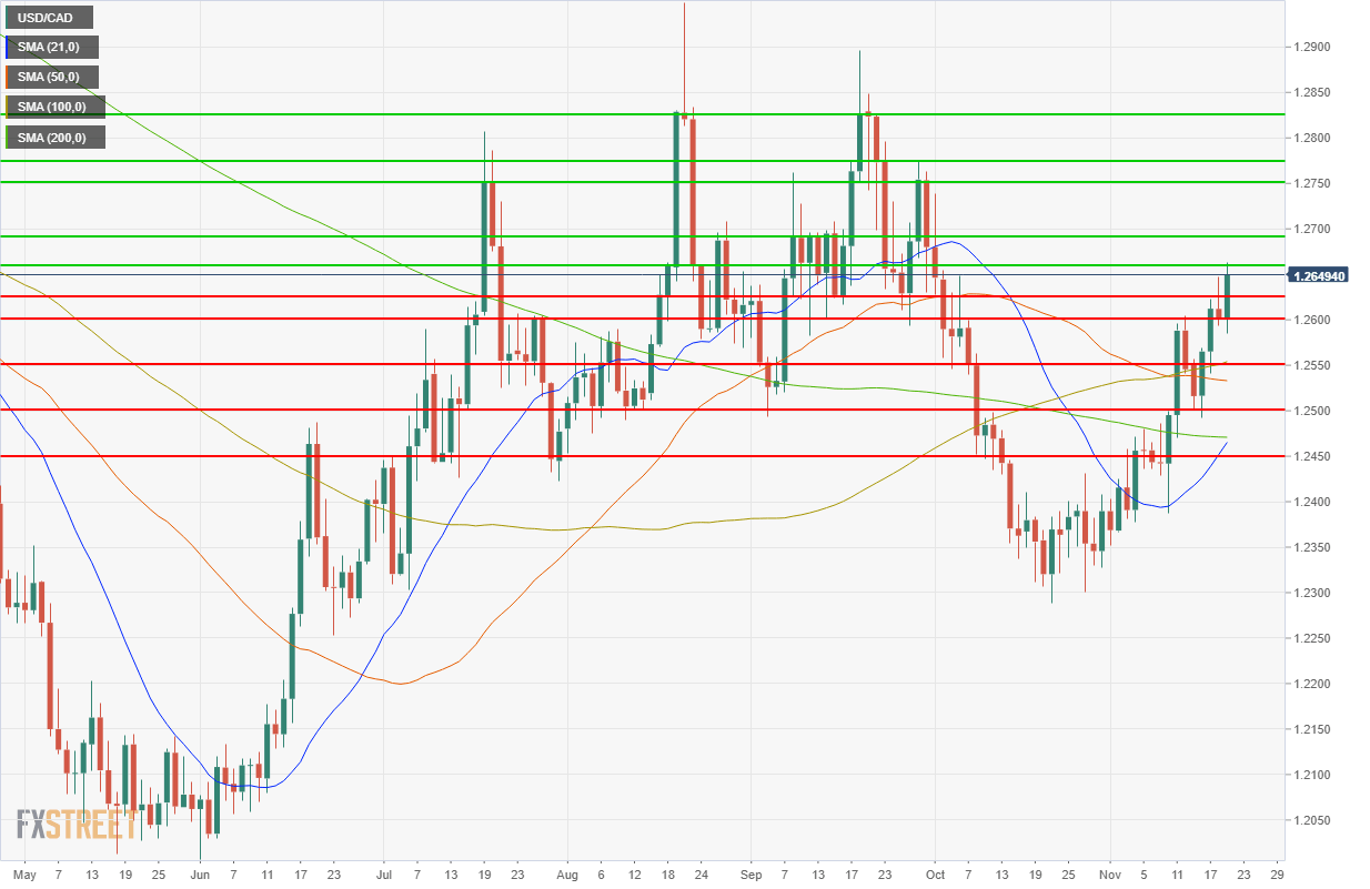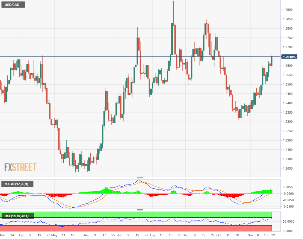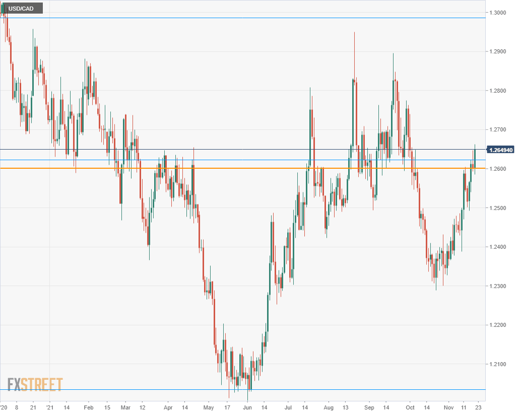 - USD/CAD closes above 1.2600 on Wednesday, Friday’s finish a seven-week high at 1.2649.
