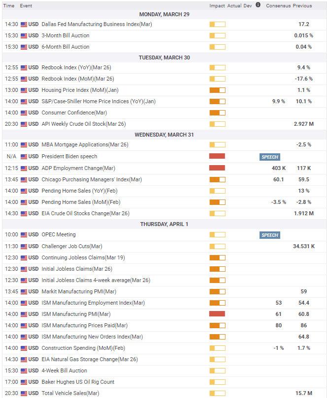 March payrolls rules the week with half-a-million new jobs forecast. If the prediction is accurate or better it will give the dollar and yields a healthy boost. ISM Manufacturing PMI for March could provide additional positive news.