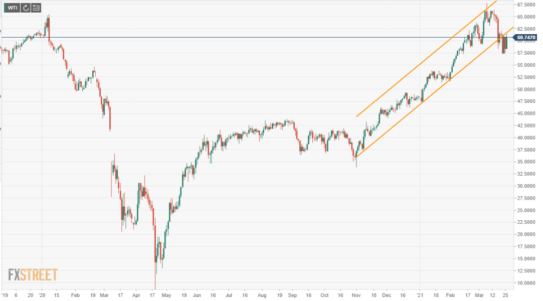 Oil prices have been indecisive this month touching a pandemic and more than one year high on March 8 at $67.87 then reversing ten days later losing 7.5% on March 18 and closing at $59.59.