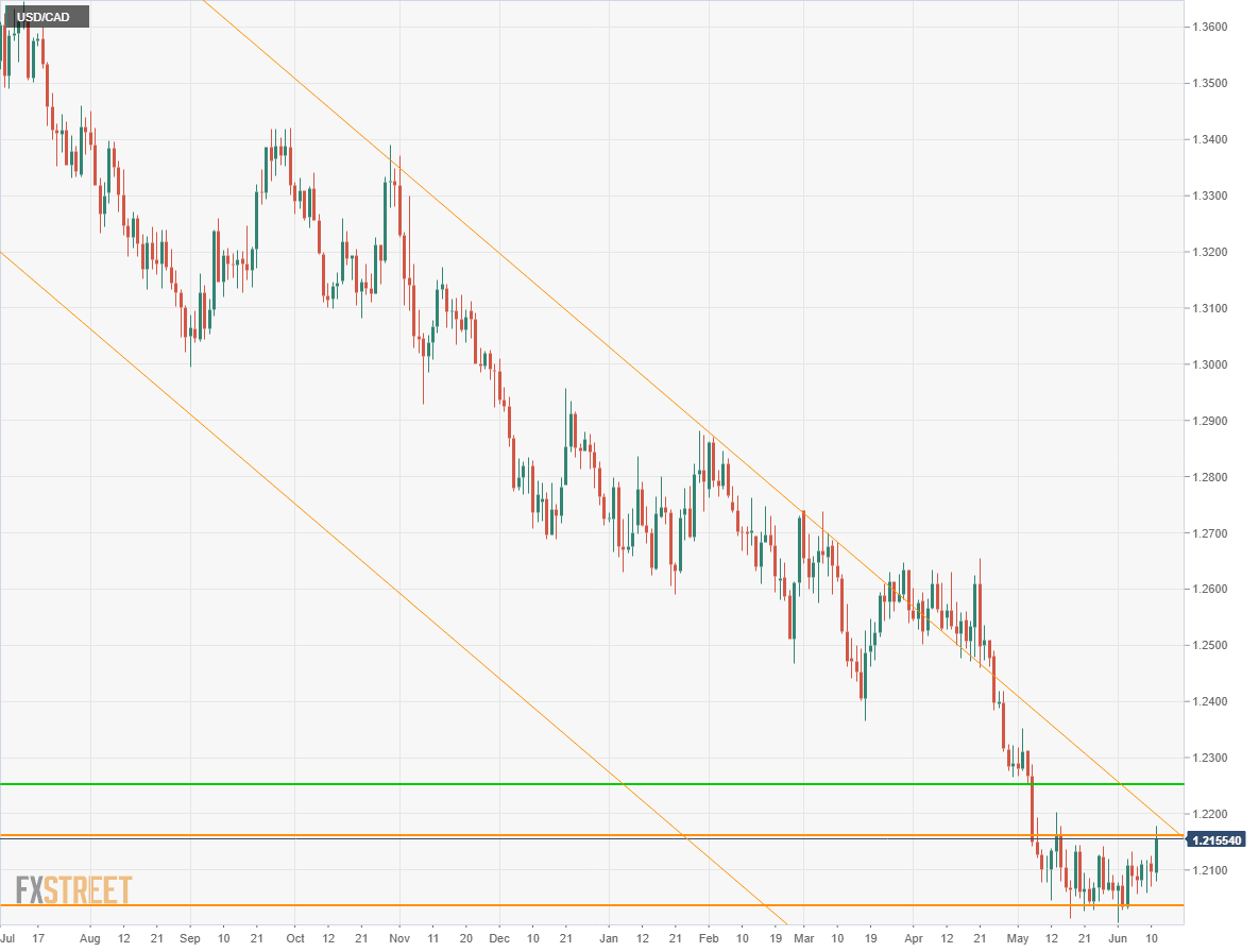 The USD/CAD has been trading in an exaggerated one figure rut for more than a month from, 1.2035 to 1.2160 and back. Friday’s nearly 100-point move brought the pair to the top of that range, just as the drop on June 2 touched the bottom. There has been no trend since the plunge on May 6 disposed of support at 1.2265.
