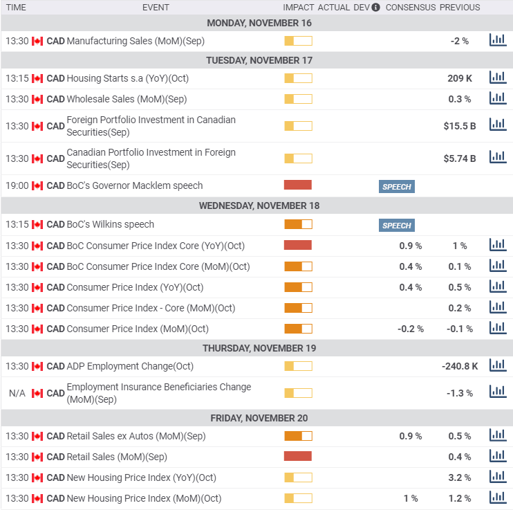The Consumer Price Index climbed 0.4% in October and 0.7% on the year. The forecasts had been 0.2% and 0.4%. The Bank of Canada Core Consumer Price index for the month was as expected at 0.4% and 1% for the year on a 0.9% projection.