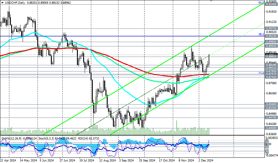Overall, above the key support levels of 0.8767 (200-period moving average and the lower line of the ascending channel on the daily chart), 0.8745 USD/CHF is trading in the medium-term bull market zone, which makes long positions relevant in the medium term, we noted in our fundamental analysis today and suggested that “after a confirmed breakout of 0.8885, 0.8900, further growth should be expected.”