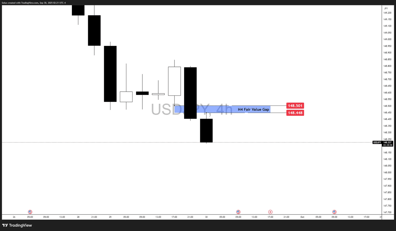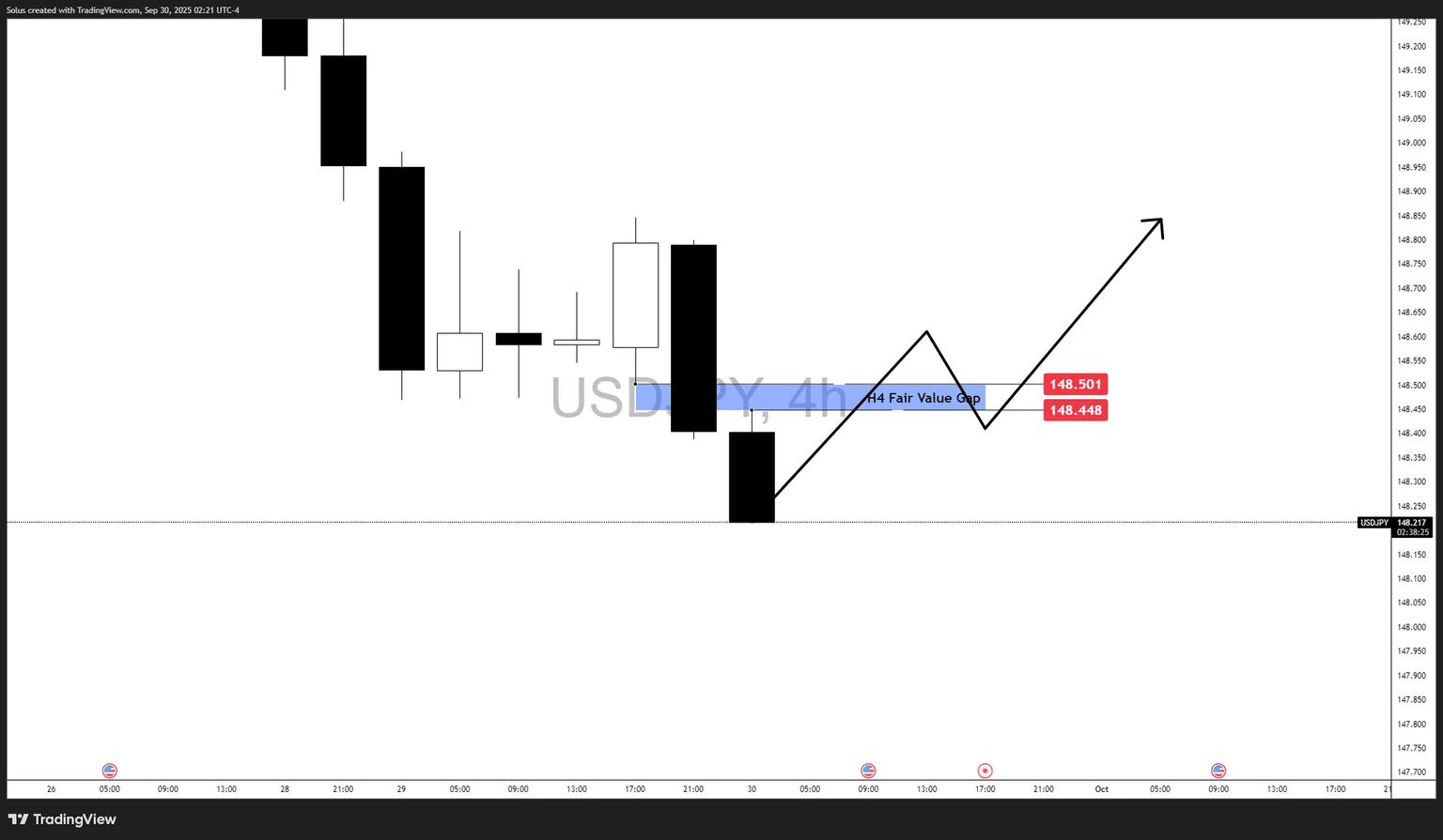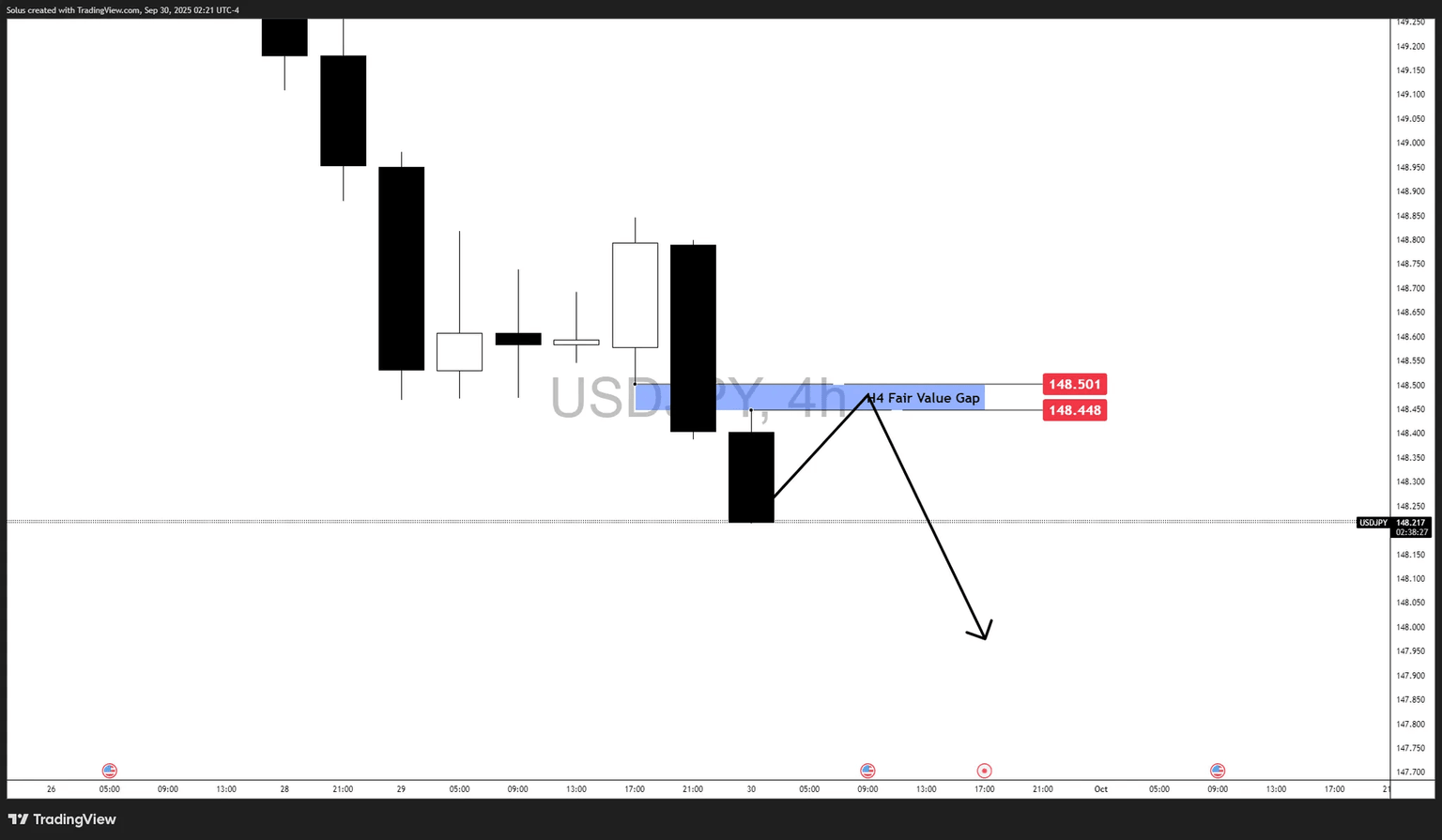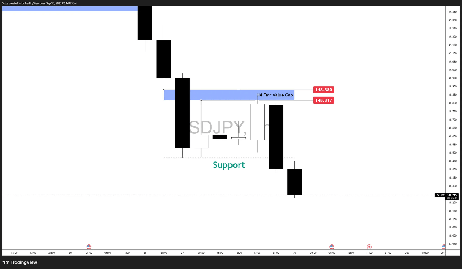 - Rejection at the 148.448–148.501 FVG highlighted supply dominance.