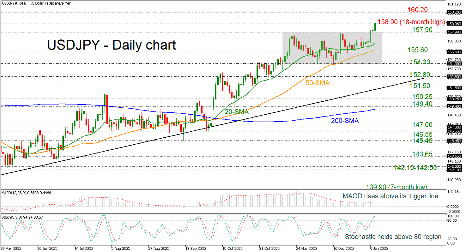 Conversely, a drop below the 157.90 support could shift the bias back to neutral, bringing the 20- and 50-day simple moving averages (SMAs) at 156.65 and 155.85 into focus.